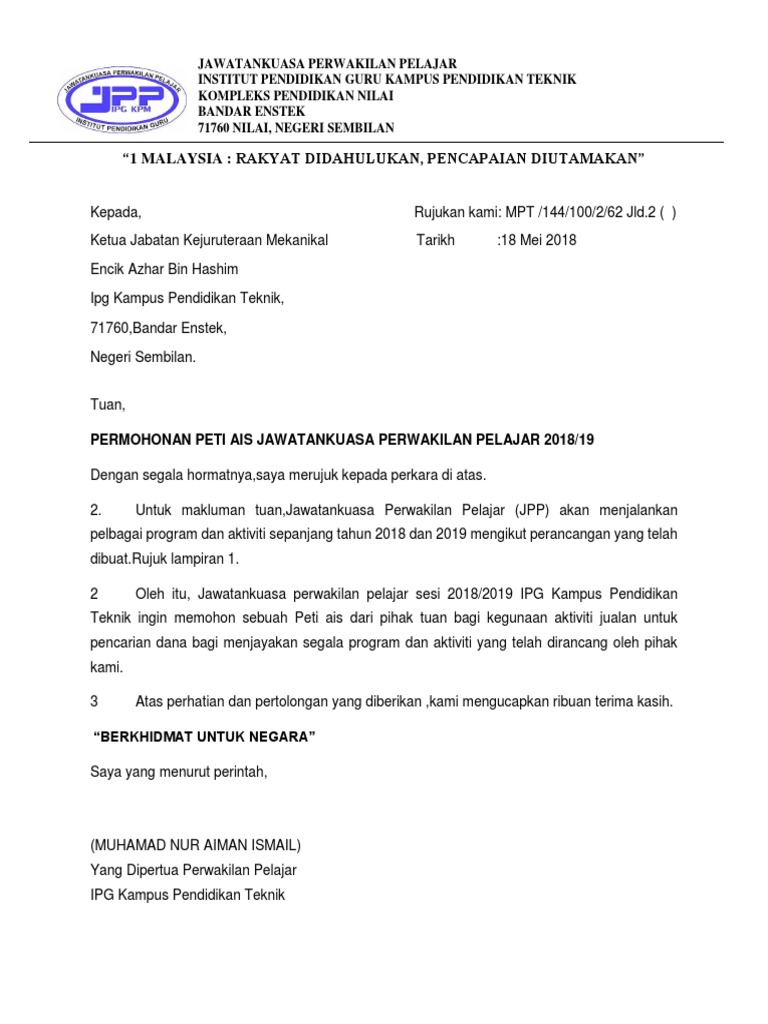 Surat Permohonan Peti Ais Jpp B Keusahawanan No Rujukan
