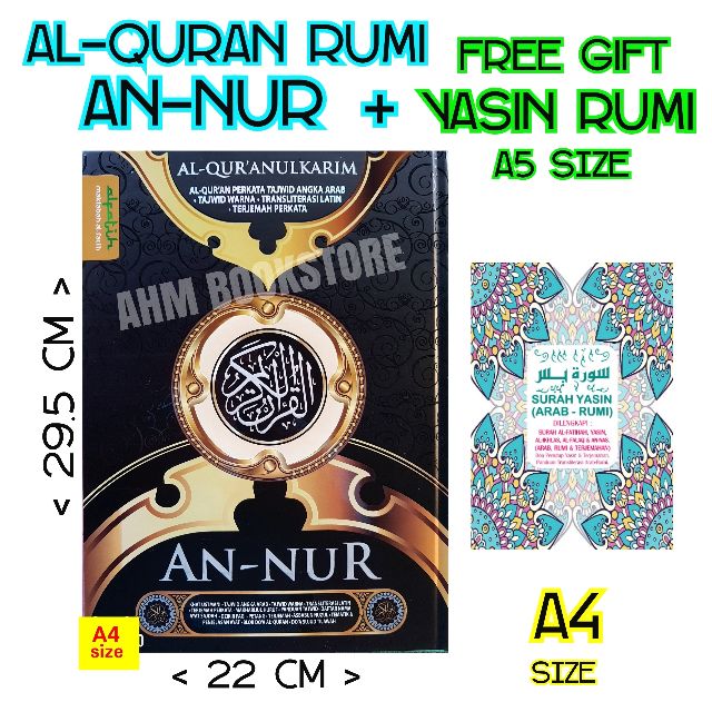 Ready Stock Alquran Al Quran Rumi Annur An Nur An Nur A4 Size Percuma Yasin Rumi Shopee Malaysia