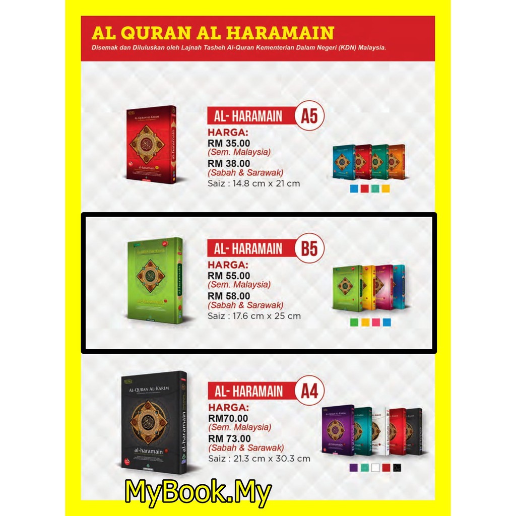 Myb Saiz B5 Al Quran Haramain Terjemahan Tajwid Berwarna Karya Bestari Shopee Malaysia
