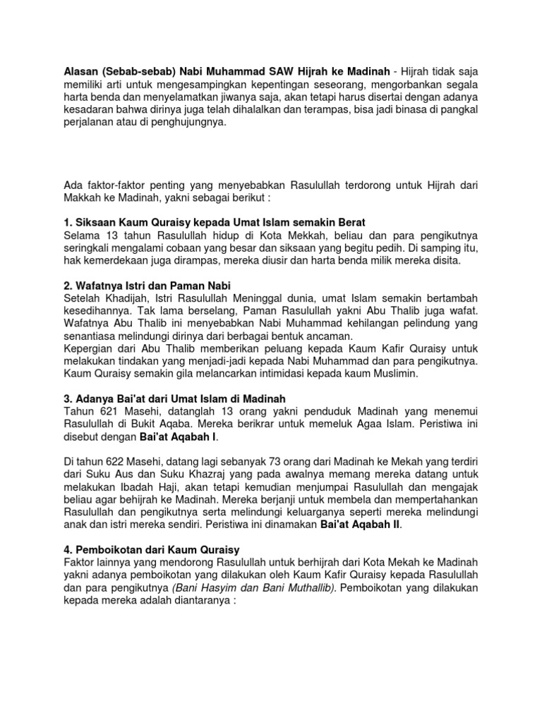 Apa Sebab Sebab Nabi Muhammad Saw Hijrah Brainly Co Id