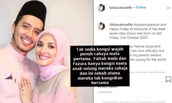 Nur Fatima Aisya Nama Anak Fattah Amin Dan Fazura Belum Sedia Kongsi Wajah Penuh Fatima Masih Muda Sangat Untuk Media Sosial Hiburan Mstar