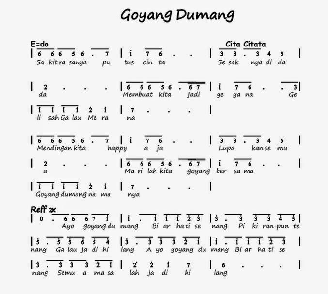 Not Angka Lagu Sakitnya Tuh Disini Cita Citata Partitur Lagu Terbaru