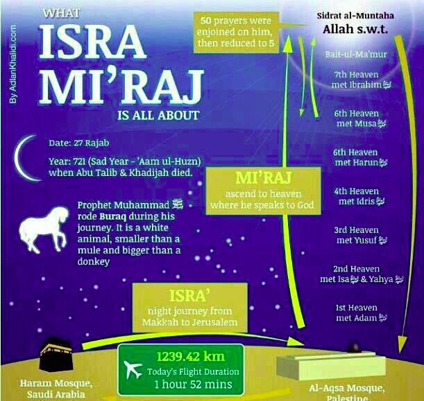 Apa itu israk mikraj. Para ulama merumuskan bahawa sebab dan hikmah daripada israk dan mikraj adalah untuk menghibur diri rasulullah yang ketika itu dilanda kesedihan kerana kematian bapa saudara yang tersayang abu talib serta isteri kesayangan baginda khadijah juga di samping penentangan masyarakat taif terhadap usaha dakwah baginda yang hampir hampir meragut nyawa baginda. Peristiwa israk mikraj ini tercatat dalam surah al israa ayat 1 al quran 17 1. Baginda kemudian naik ke langit sampai ke sidratil muntaha bahkan ke mustawa dan sampai di bawah arasy allah suatu tempat di mana alam ini diatur dengan menembusi tujuh lapis langit lalu kembali semula ke makkah pada malam yang sama. Israk dan mikraj adalah dua peristiwa yang amat besar dan luar biasa yang dialami oleh nabi muhammad s a w dan dianggap sebagai satu penganugerahan yang tinggi nilainya dari segi kerohanian.