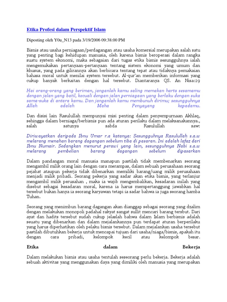 Etika Bisnis Dalam Islam Tuntunan Islam