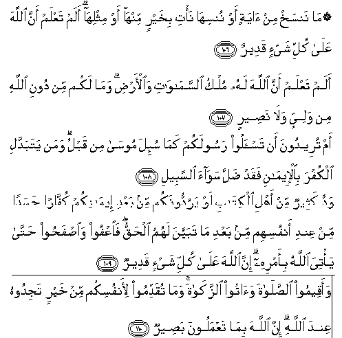 Surat Al Baqarah Ayat 106 107 108 109 Dan 110 Lengkap Dengan Arti Terjemahannya Alquran Surat Ayat