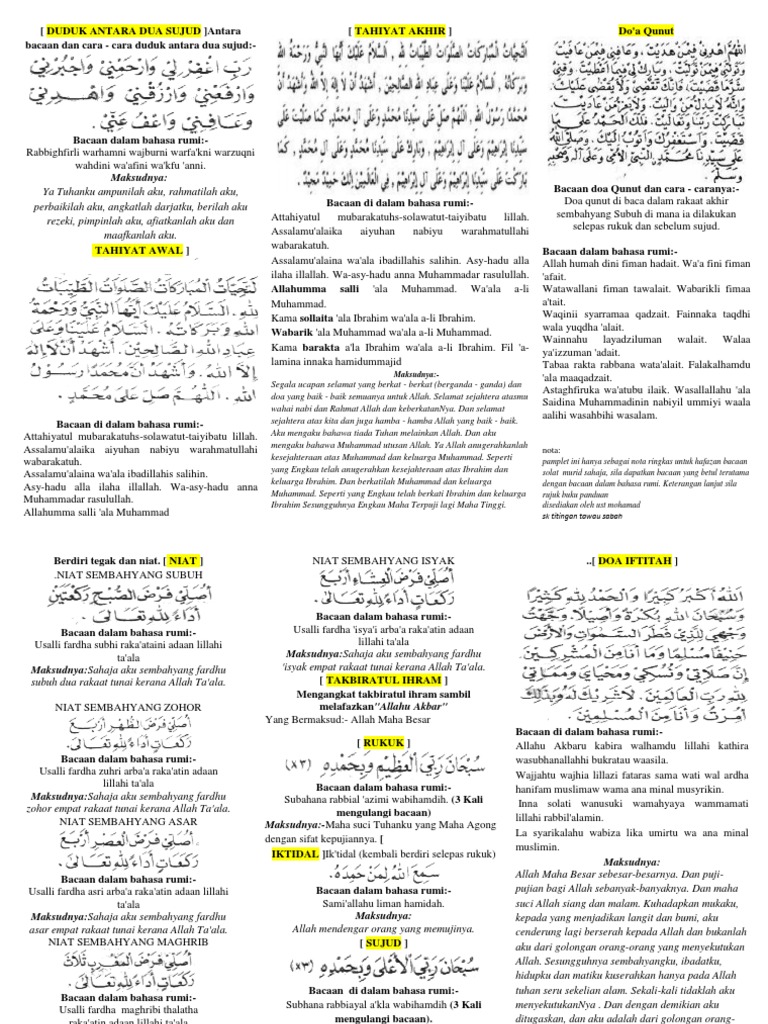 Bacaan Doa Tahiyat Akhir Tahiyat Awal Rumi Jawi