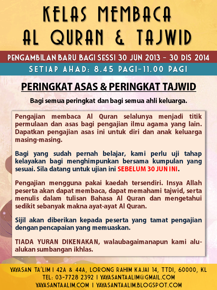 Blog Yayasan Ta Lim Pengambilan Baru Kelas Membaca Al Quran Tajwid 2013 2014