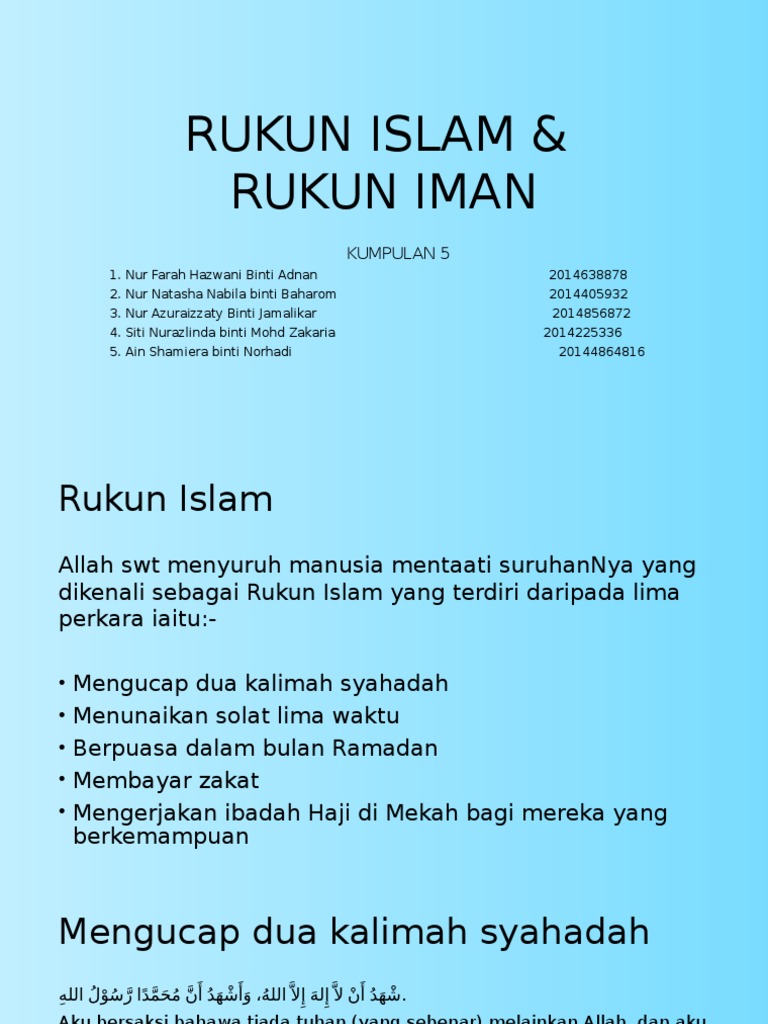 5 Rukun Islam 6 Rukun Iman Kutipan Pelajaran Hidup Iman Kekuatan Doa