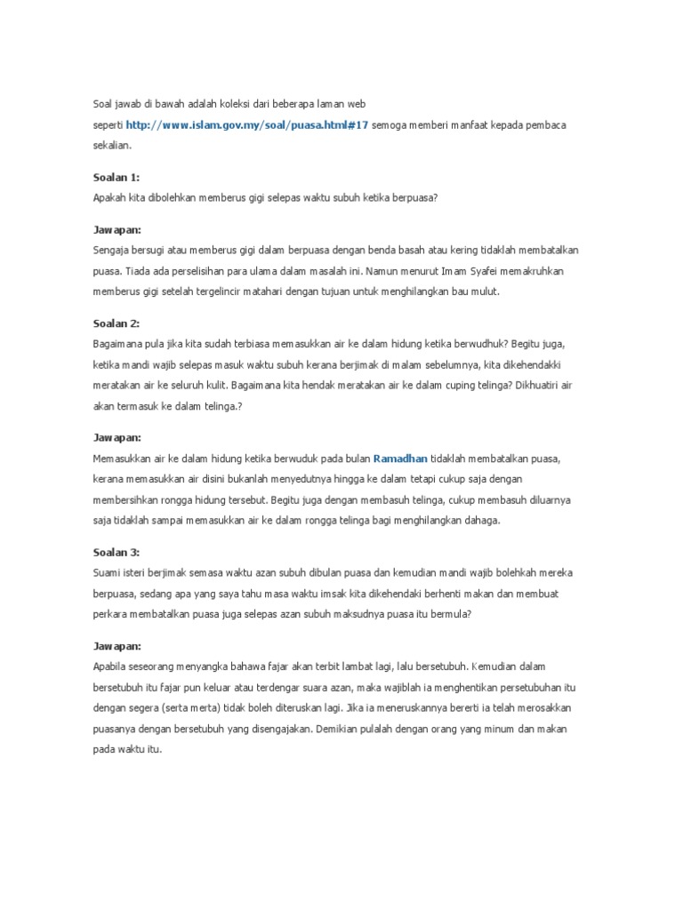Soal Jawab Di Bawah Adalah Koleksi Dari Beberapa Laman Web