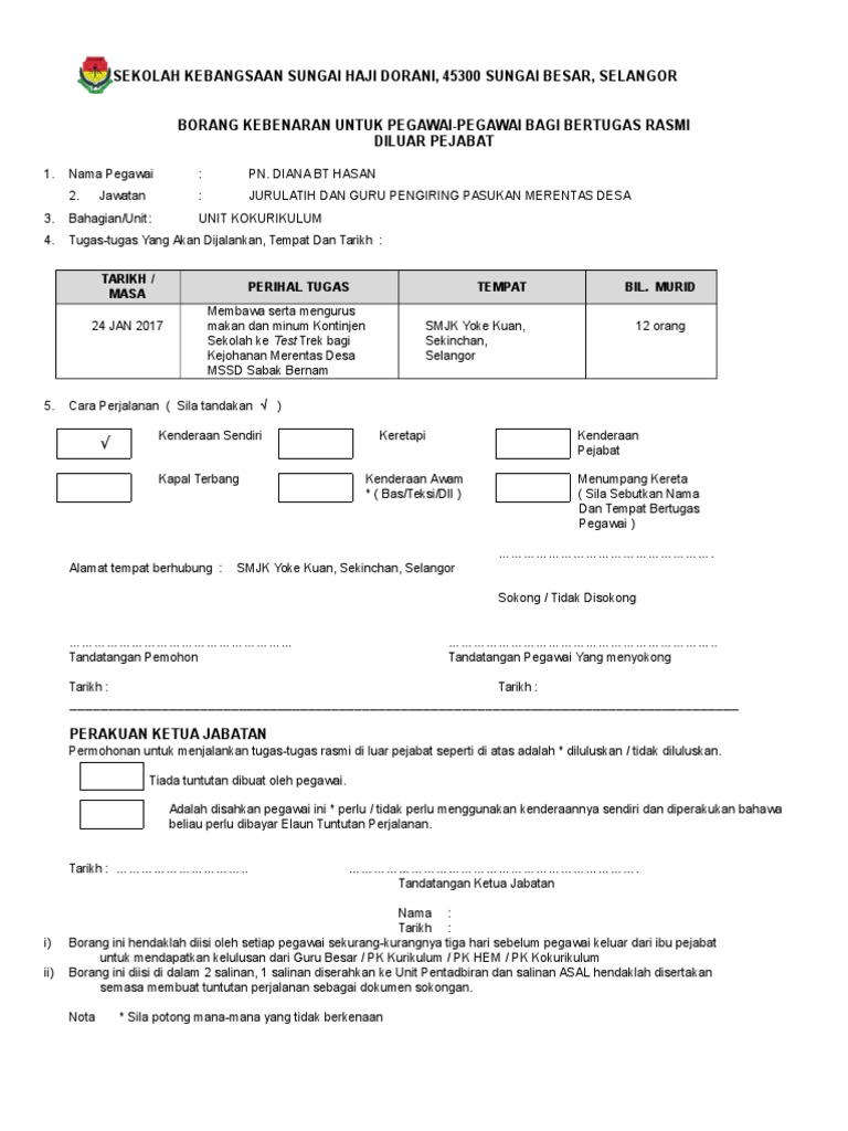 Borang Kebenaran Penggunaan Kenderaan Sendiri Oleh Guru Untuk Membawa Murid Bagi Urusan Rasmi Kementerian Pendidikan Malaysia Kpm Converted