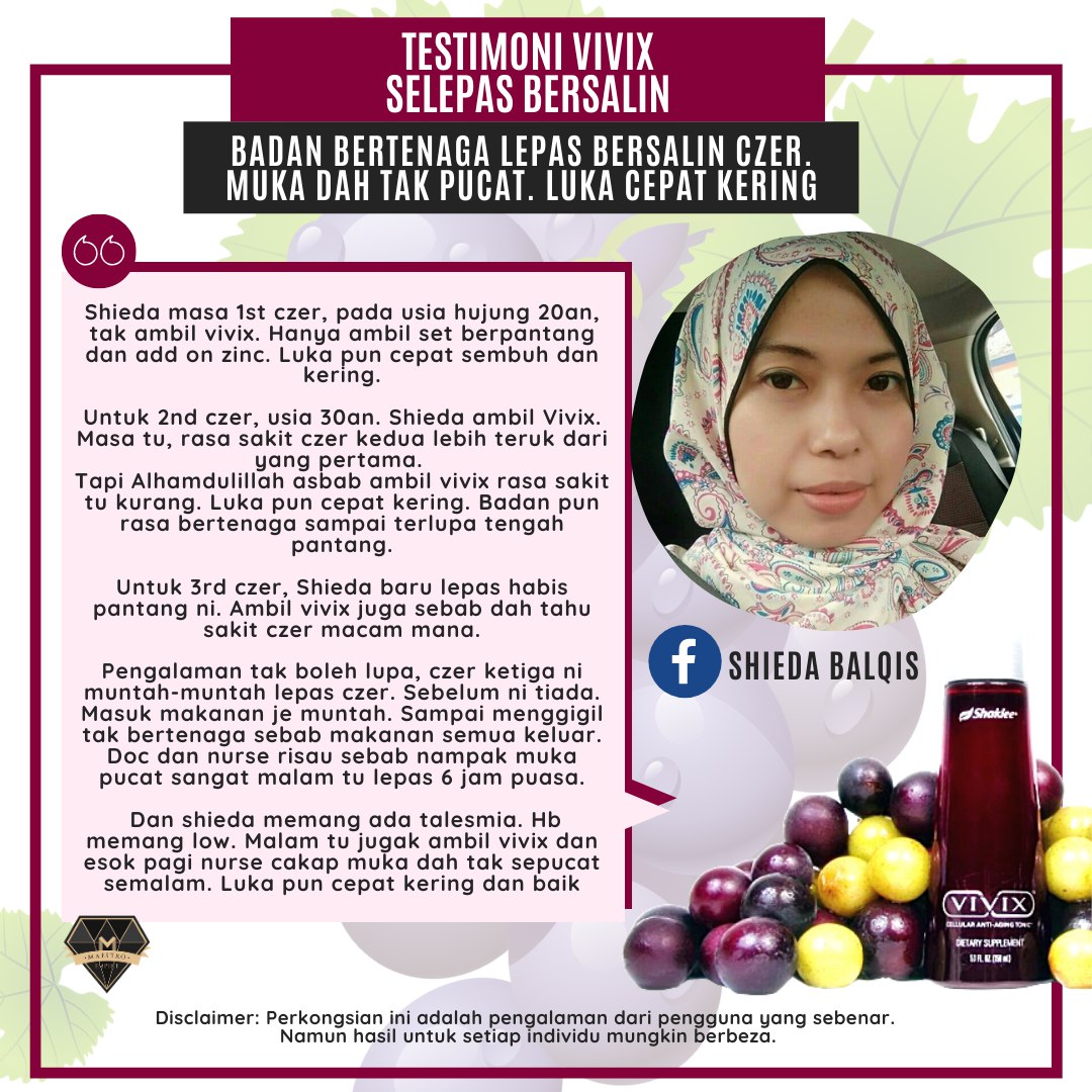 Testimoni Vivix Bantu Tambah Tenaga Dan Sembuhkan Luka Bersalin Dengan Cepat Eina Md Ali Pengedar Shaklee Kedai Nutrisi Usj Subang Jaya