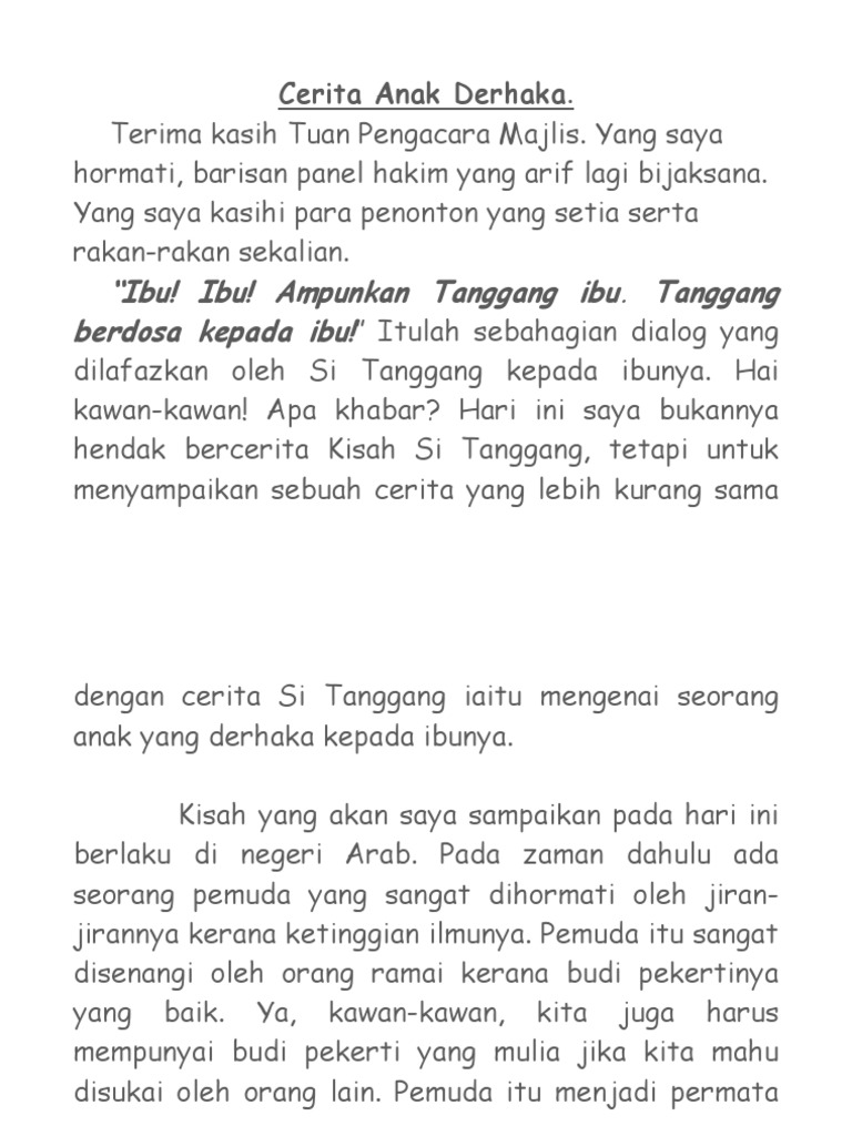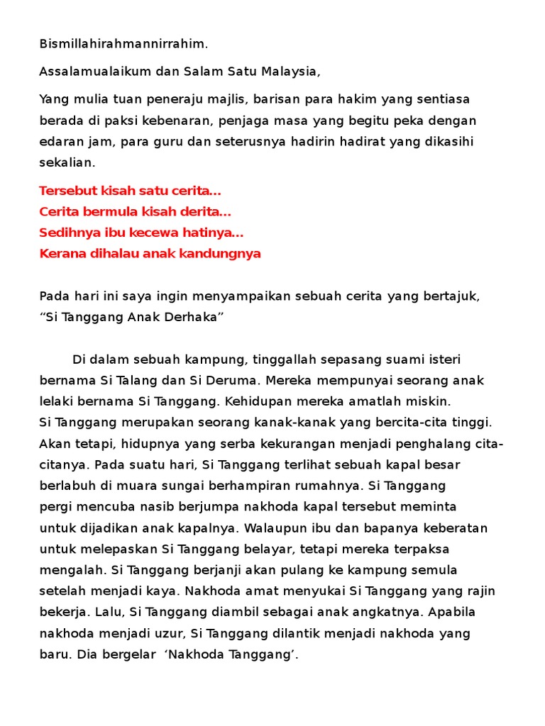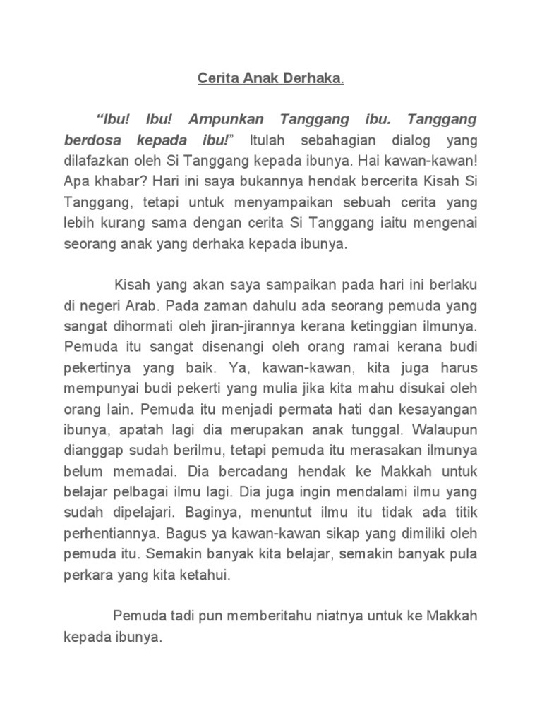 Si Tanggang Anak Derhaka Siap Docx