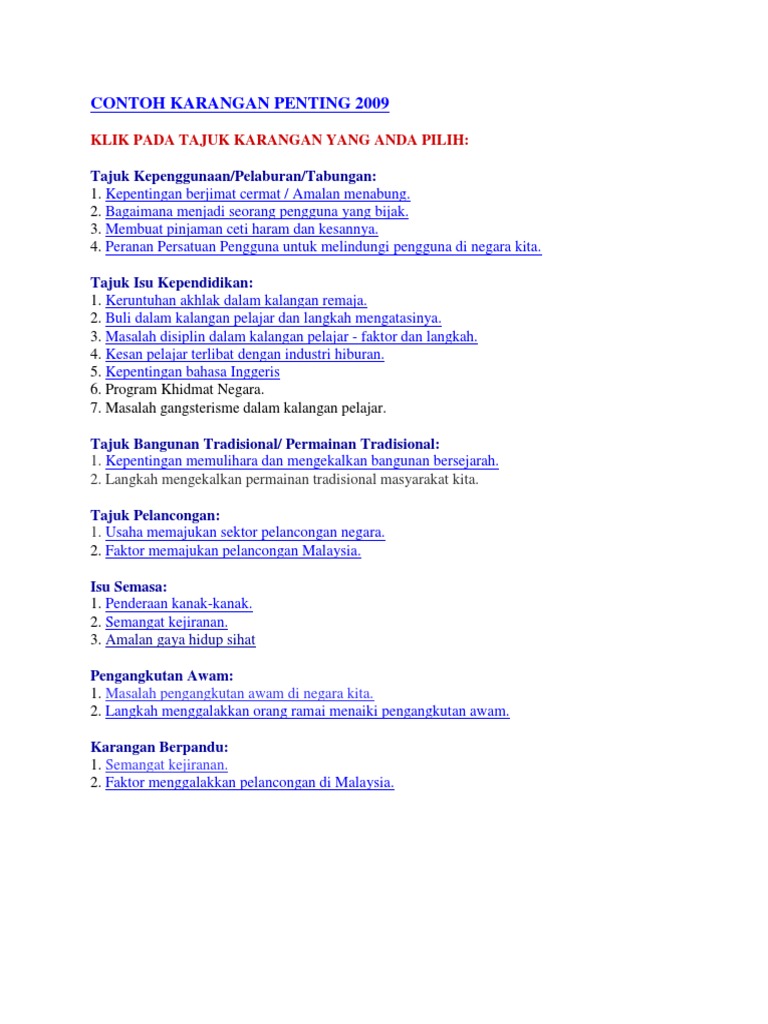 Contoh Karangan Penting 2009