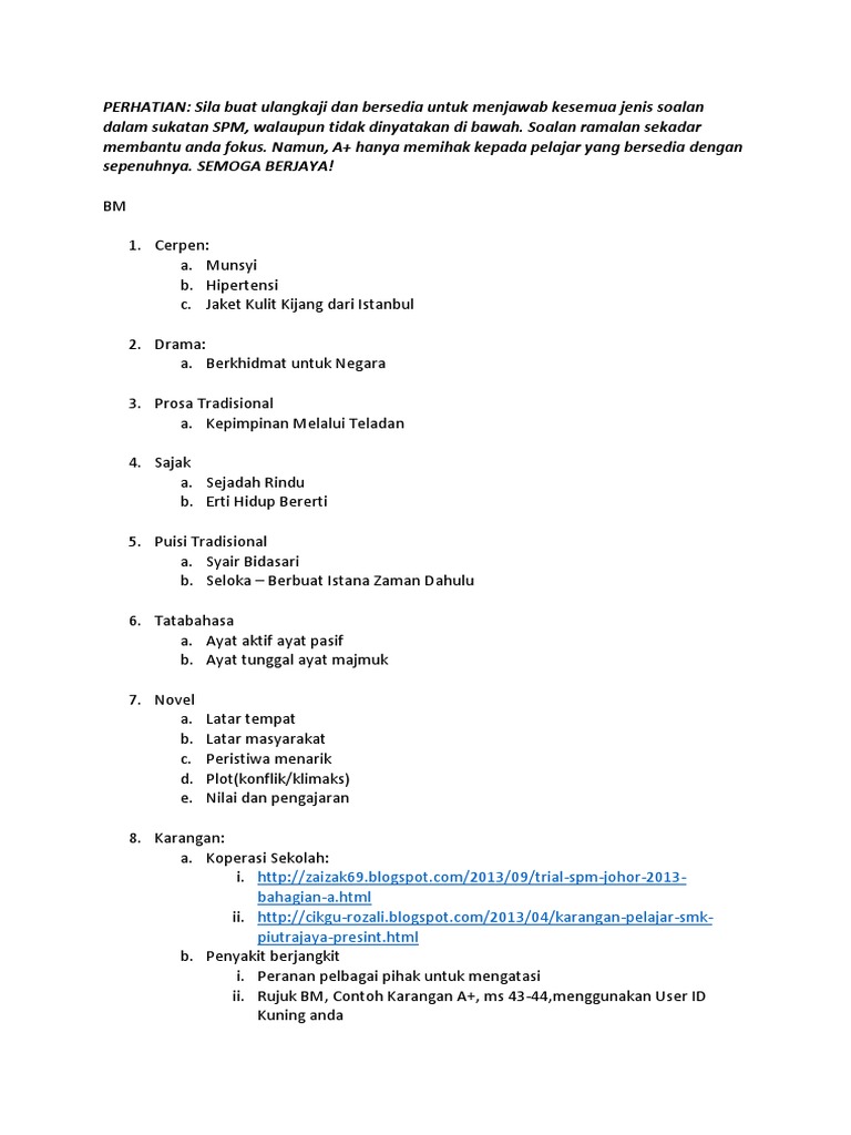Ramalan Bm Spm 2018