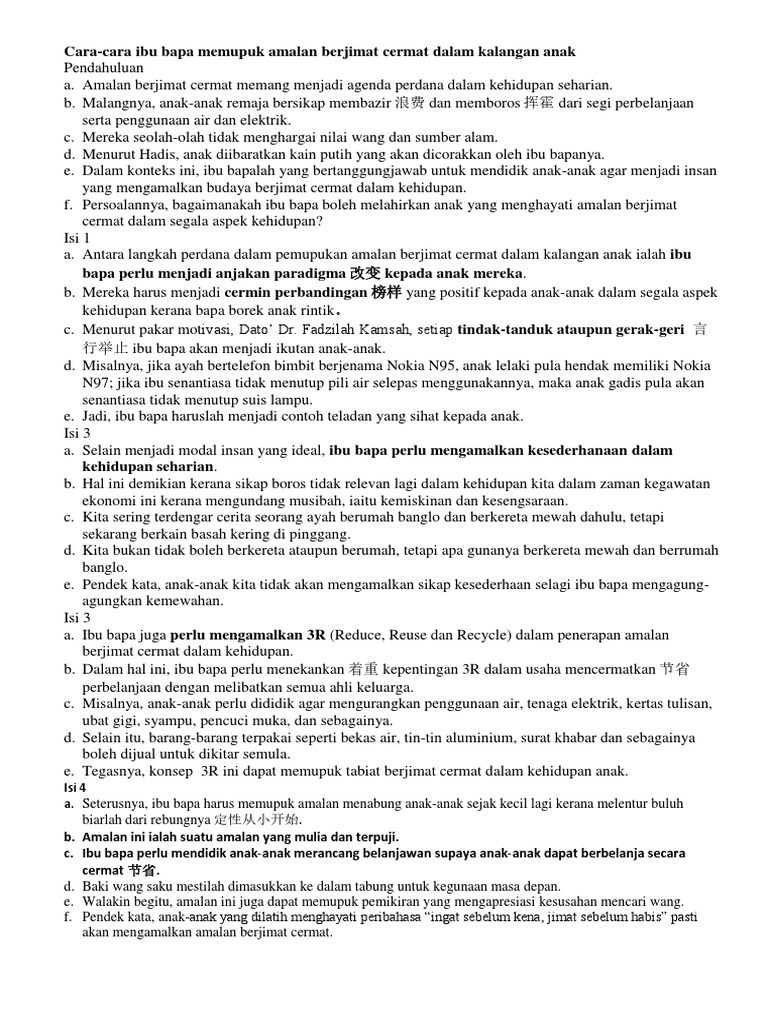 Contoh Karangan Spm Amalan Berjimat Cermat
