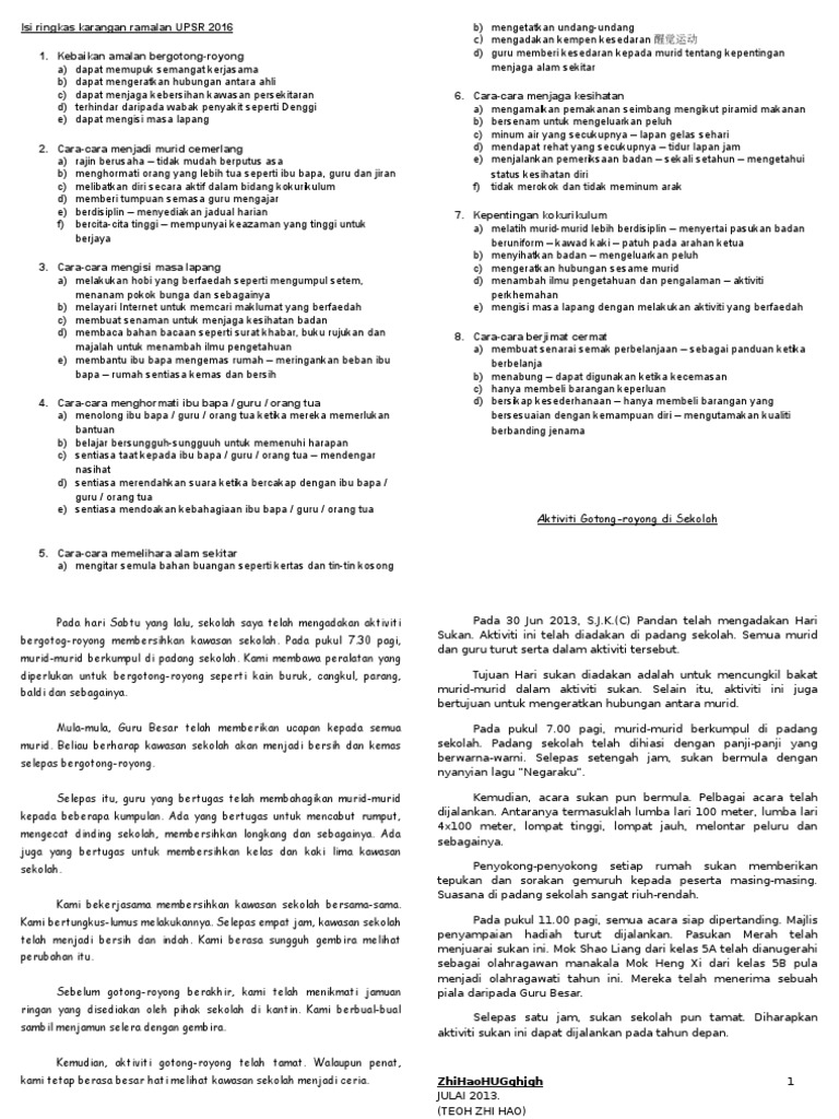 Isi Ringkas Karangan Ramalan Upsr 2016