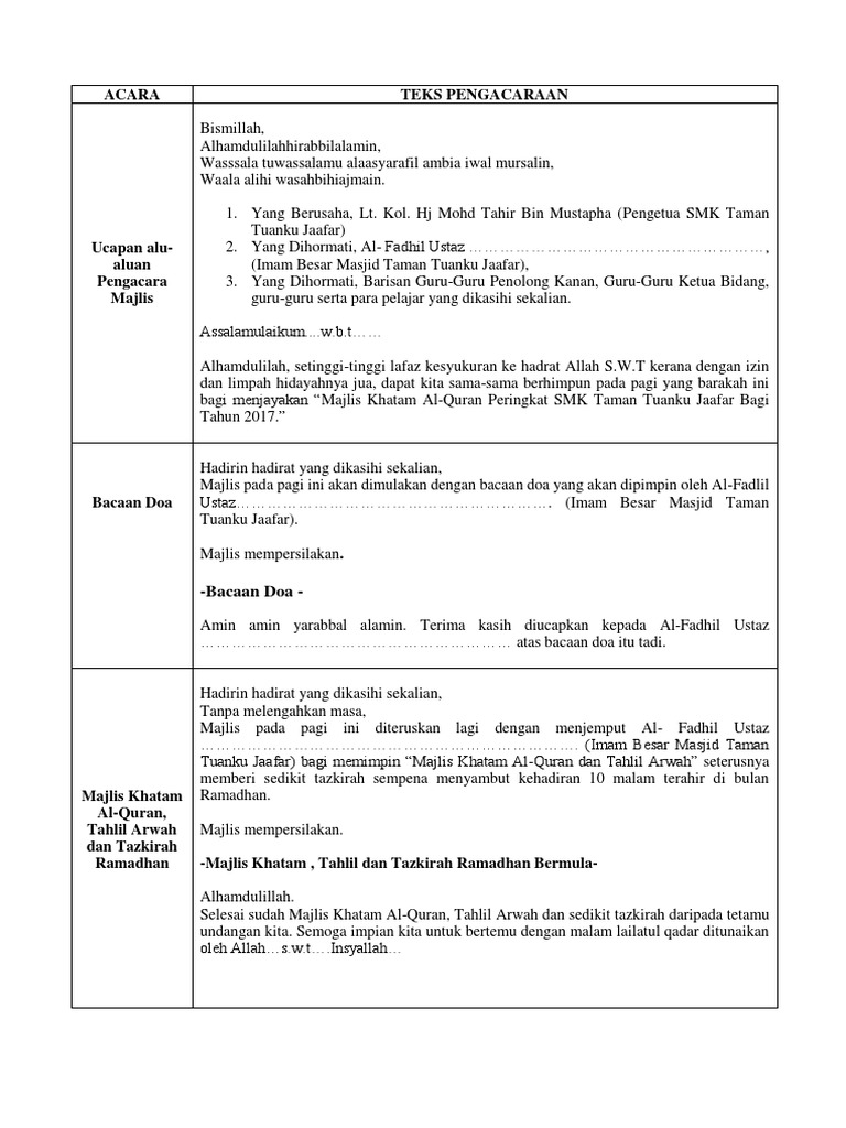 Teks Mc Majlis Khatam Al Quran