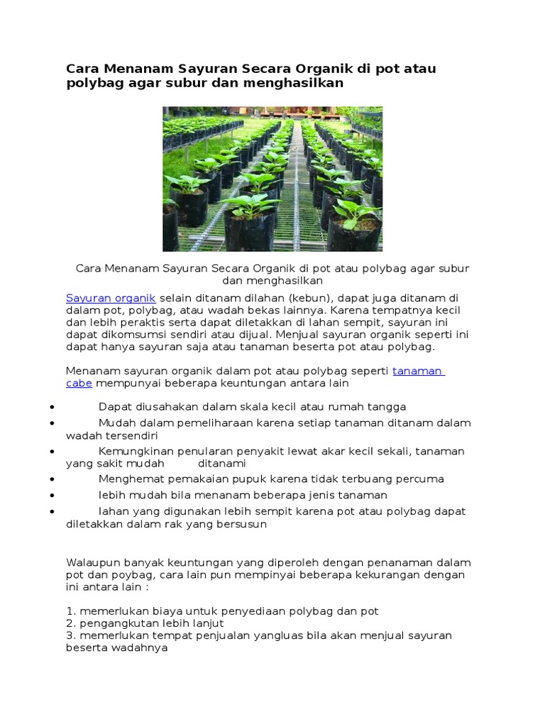 Cara Menanam Sayuran Secara Organik Di Pot Atau Polybag Agar Subur Dan Menghasilkan Bisnisheuheuheu