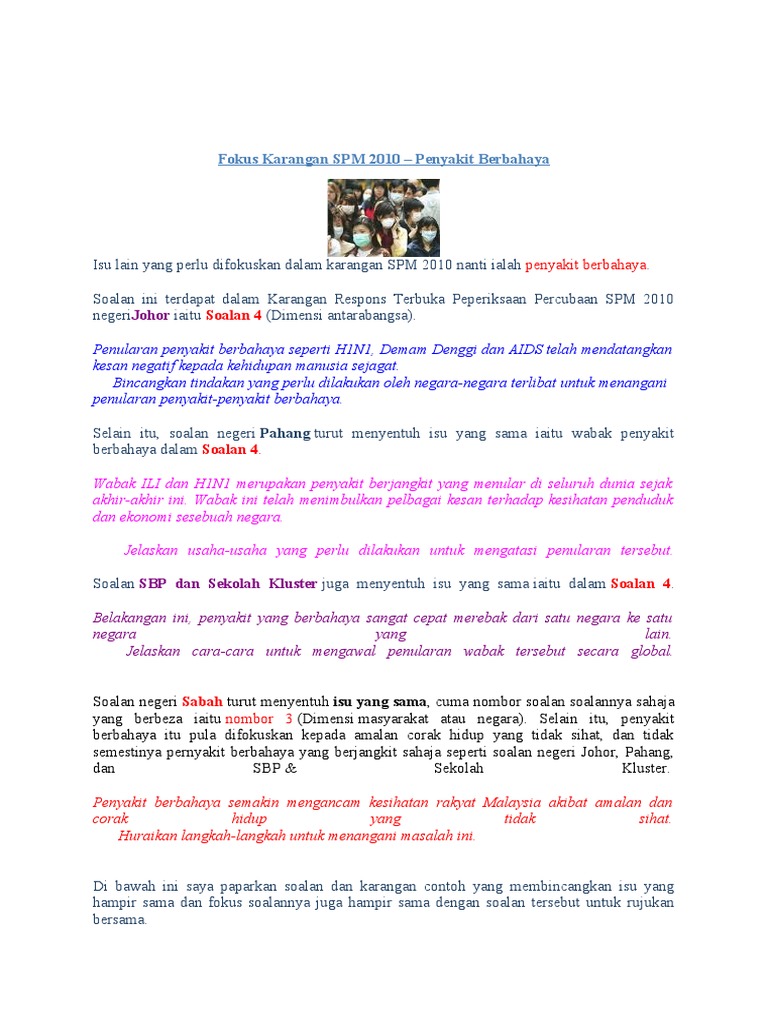 Contoh Karangan Spm Penyakit Berjangkit Karangan Net