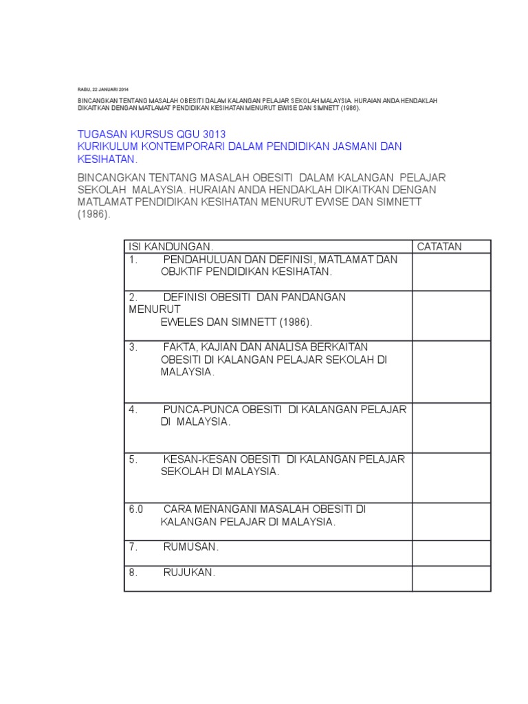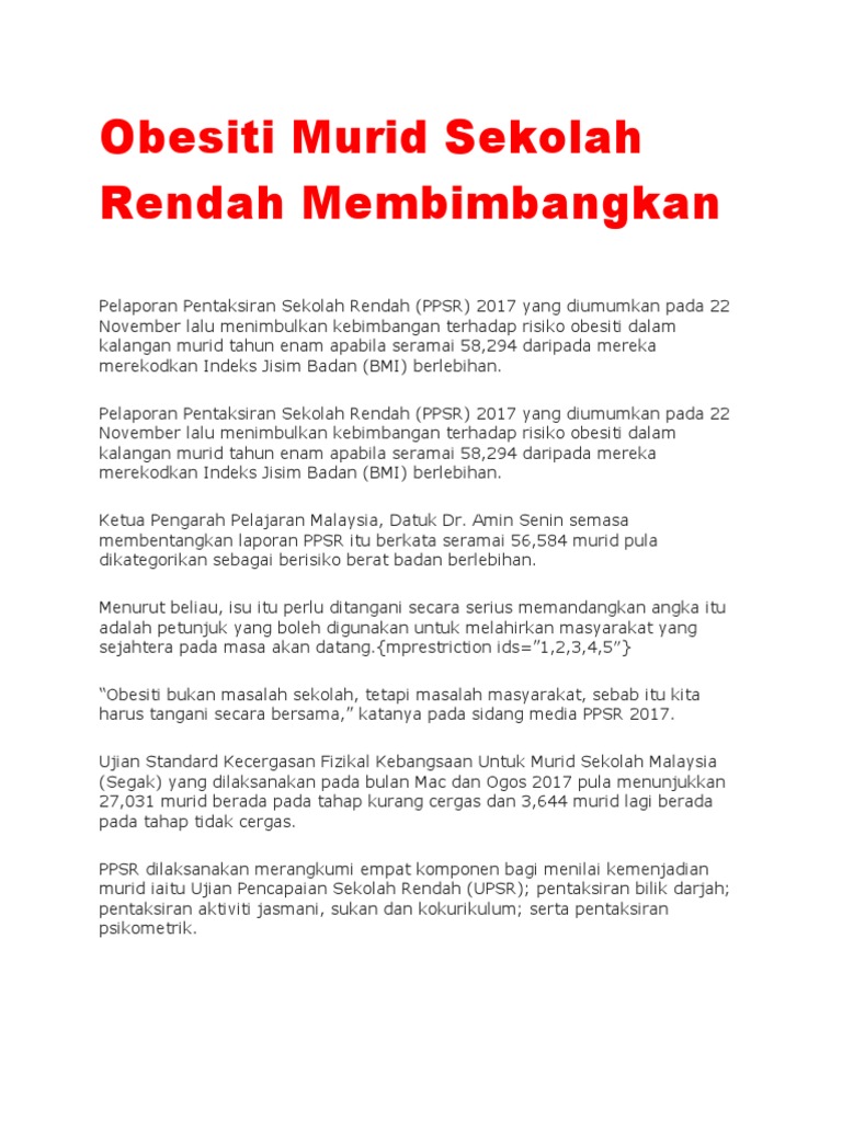 Punca Dan Cara Mengatasi Masalah Obesiti Karangan Pelajar Stpm