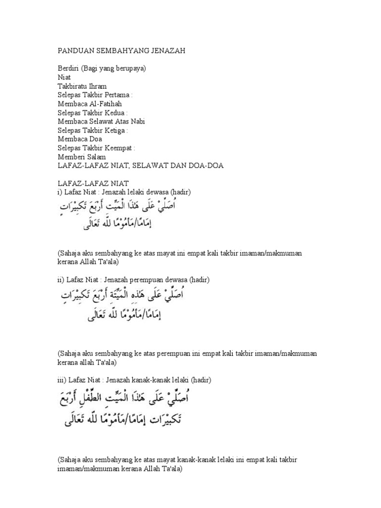 Sunnah Dan Alamiah Solat Jenazah Cara Ringkas Solat Sembahyang Jenazah 1 Angkat Takbir Allahuakbar Niat Dalam Hati Sahaja Aku Solat Jenazah Terhadap Mayat Ini 4 Takbir Fardhu