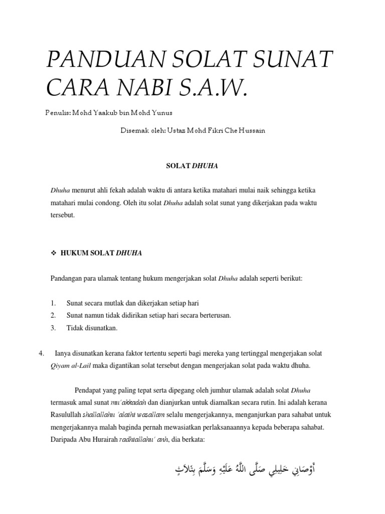 Panduan Solat Sunat Cara Nabi S A W