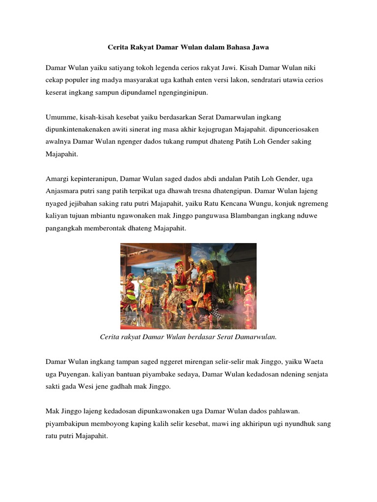 Cerita Rakyat Damar Wulan Dalam Bahasa Jawa