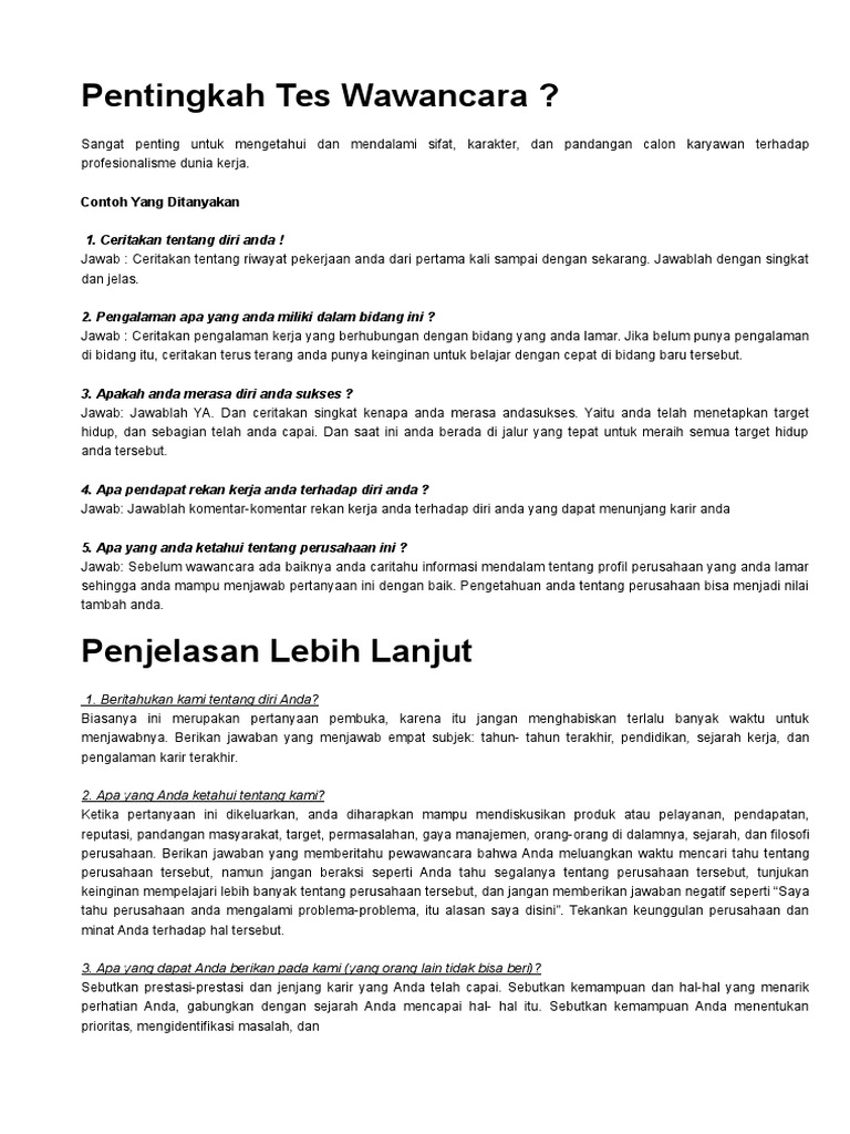 Kupdf Net Bocoran Pertanyaan Dan Jawaban Wawancara Kerja