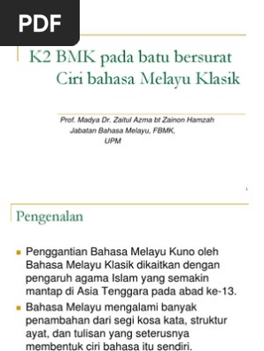 K2 Bmk Pada Batu Bersurat Ciri Bahasa Melayu Klasik Ppt Download