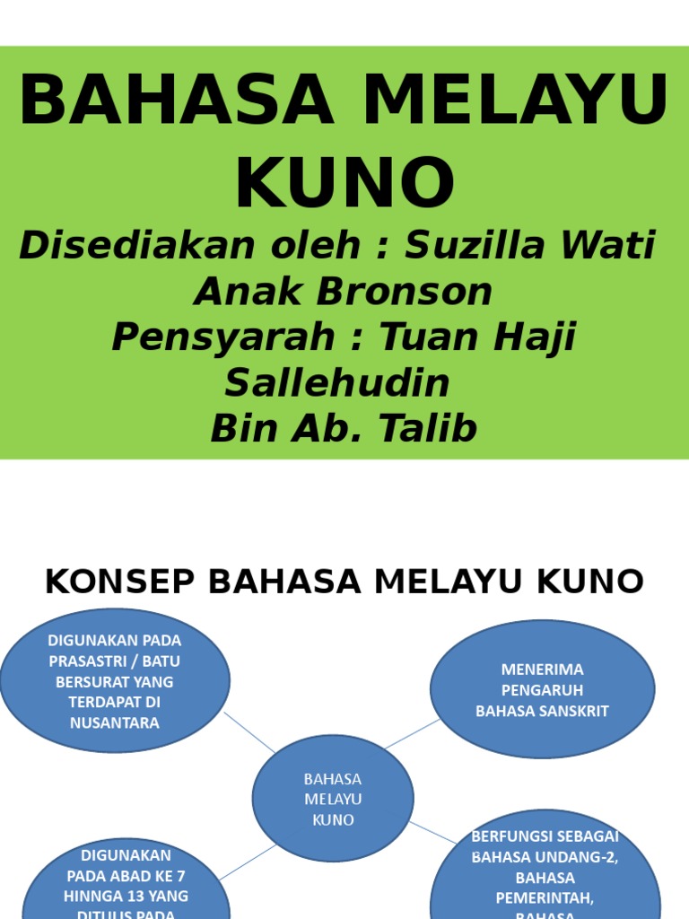 Bahasa Melayu Kuno Disediakan Oleh Suzilla Wati Anak Bronson Pensyarah Tuan Haji Sallehudin Bin Ab Talib