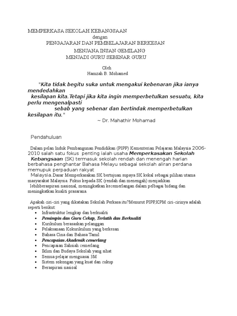 Ibu bapa memainkan peranan penting untuk menerapkan didikan agama dan moral kerana melentur buluh biarlah dari rebungnya. Falsafah ini perlu menjadi pegangan setiap pelajar yang diberi tanggungjawab sebagai pemimpin kerana mereka perlu menjadi contoh dan teladan kepada seluruh warga sekolah. Contoh karangan terbaik ciri diri murid yang cemerlang akhlak yang perlu ada untuk berjaya. Ciri ciri guru menguasai kemahiran komunikasi dan interpersonal berpengetahuan dan berketrampilan cekap melaksanakan kurikulum persekolahan mahir mengintegrasi teknologi maklumat dan komunikasi ict berdaya tahan dalam menghadapi cabaran profesional sentiasa mengamalkan nilai nilai keguruan dan etika profesion.