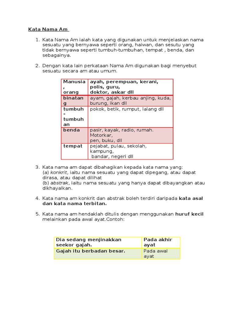 Ujian Pasca 1 Kata Nama Am