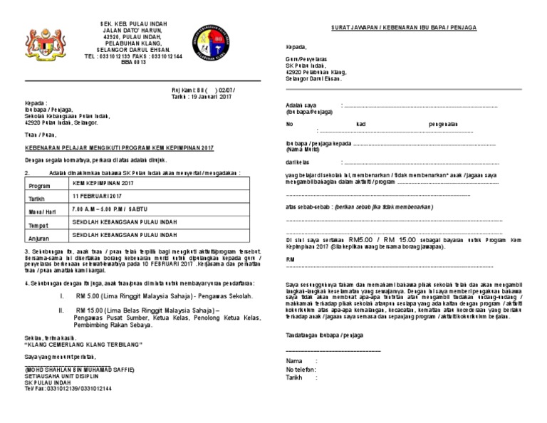 Surat Rasmi Kebenaran Ibu Bapa Surat Rasmi U